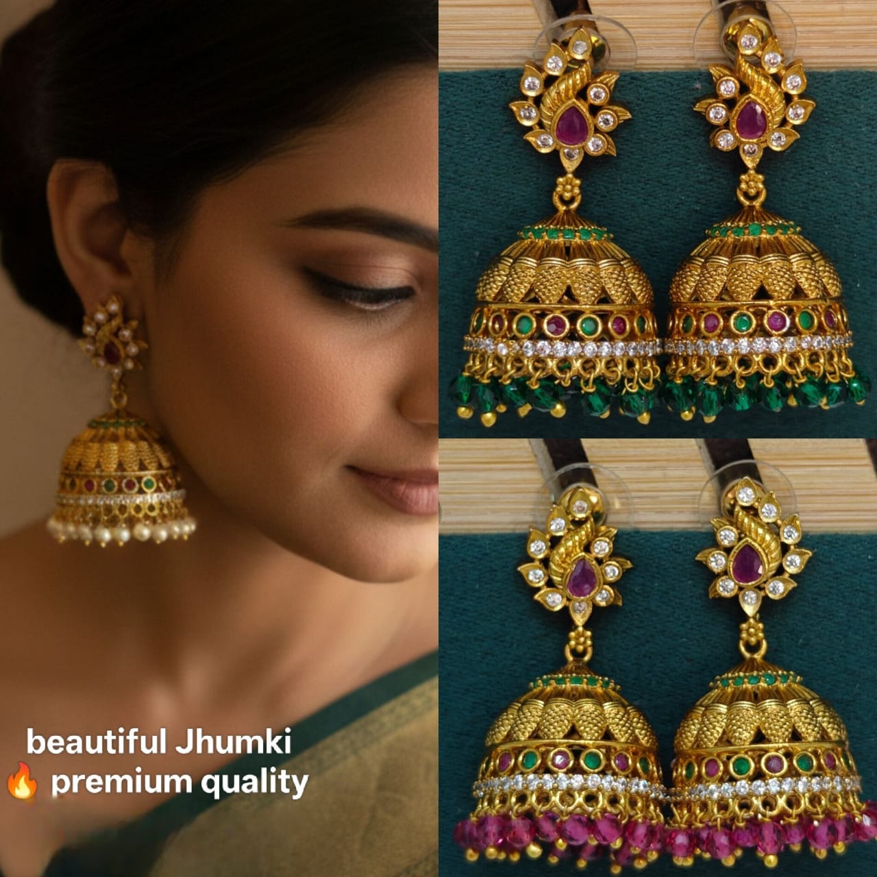 Traditional Jumkas made with exquisite craftsmanship. Each piece features fine gold finishing, sparkling stones, and timeless designs to elevate your ethnic look.